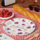 Prato De Papel Floral de Aquarela Rosa Burgundy