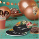 Noir Plates Floral apresentam um buquê pintado, em uma variedade de cores sobre um fundo preto para um aspecto escuro e elegante. A redação é um script branco em negrito, que é totalmente personalizável. Você pode usar essas placas em recepções, jantadas de ensaio, festas de noivado e aniversários. Projetado para coordenar com outros itens de casamento Floral Noir.