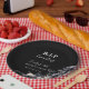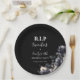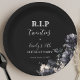 "funeral for my youth" collection, they feature a rich black background with elegant “R.I.P twenties” typography and moody gothic florals along the edge. Personalize the name, age, and date to create custom disposable plates that make your celebration feel cohesive from invite to dessert table.