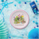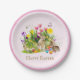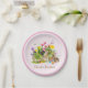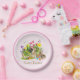 Monte uma mesa de Páscoa encantadora com este prato de papel do Coelho. Este prato apresenta um dos meus desenhos de arte em colagem de coelhos, folhagens de jardim e flores da primavera. Personalize este prato de papel rosa com o seu texto.