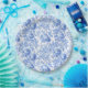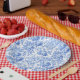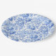 Prato de Papel Floral Rosas Toile Francês Azul Ant