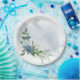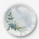 Bonitos tons azuis e flores brancas e folhas verdes: placa de papel botânico para casamento