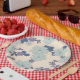 Prato De Papel Flores Azuis, Flores Roxas, Padrão Floral