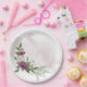 Bonita massa rosa e flores brancas e folhas verdes: prato de papelão botânico