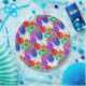 Padrão floral artificial com mistura de tinta e aquarelas em vermelho, azul, rosa, verde, laranja, amarelo púrpura, branco, castanho, preto. Pequenos círculos verdes sobre fundo branco. Trabalho de arte originalmente por TamiraZDesina.