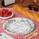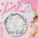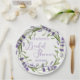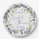 Placa de papel do chá de panela. Este design apresenta uma ilustração de aquarela das flores de lavanda púrpura. Personalize com seu nome e data.
