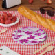 Pratos de casamento florais elegantes com flores de orquídea. Itens combinando estão disponíveis.