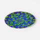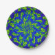 Estas placas de papel decorativo apresentam um padrão circular de mandala floral colorido de verdes luminosos e azuis, com apenas uma dica de púrpura e magenta nos cantos, girando ao redor de uma flor central com movimento caleidoscópio.