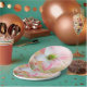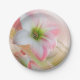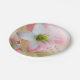 O design delicado da flor (impressão da foto) na luz - cor-de-rosa e nos tons verdes decorados por uma fita com um ornamento e as pérolas do ouro.