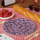 Prato De Papel Flores Estilizadas - Rosa, Azul-Céu e Preto