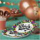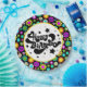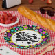 Uma Colorida Placa De Papelão De Aniversário, Patternada Em Um Design De Retros Da Sessenta.