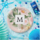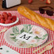Prato De Papel Flores Rosa Cor-de-Água Moderna Monogramadas
