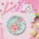 Prato De Papel Flores Rosa Esmagadas no Azul Claro