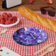 Prato De Papel Flores roxas, flores azuis