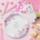 Prato de papel de aquarela floral de flores silvestres do campo roxo com belos tons de roxo, rosa e lavanda de buquês de flores silvestres naturais. Este prato de papel elegante pode ser personalizado com seus nomes e data especial. Criado por Thisisnotme©
