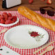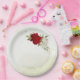 Prato De Papel flores vermelhas folhas verdes casamento