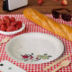 Prato De Papel flores vermelhas românticas e amarelas pálidas