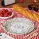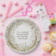 Um design de floresta encantado etéreo com cores pálidas e verdes, beges e castanhos com pequenas criaturas florestais de caracóis, pássaros e borboletas.