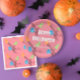 Belo impressão de Halloween com um padrão perfeito. Design divertida com vários personagens em cores pastéis: morcegos, aranhas, abóboras, fantasmas...Fá-lo morrer de amor! Veja todos os designs da coleção.