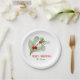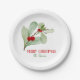 Chapas de papel de Natal simples e verde acrescentam à atmosfera festiva na próxima festa de Natal ou na próxima festa de natal. Folhagem botânica elegante com bagas vermelhas num pano de fundo branco nítido com uma fonte festiva que diz, "Feliz Natal" apela ao anfitrião minimalista que gosta de materiais de festa saborosamente curados. Personalizar com seu nome é fácil de fazer. Se você está hospedando uma festa de férias você pode encontrar mais suprimentos para festas com este tema de design na Coleção de Natal Festiva Watercolor Greenery e Berries na loja de Designs de Colheita