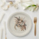 Chapas de papel com um bonito buquê de cor de pêssego, rodeadas por gramíneas de bronze e folhagem acastanhadas com sotaques de penas. Um fundo de cor creme acastanhado e leve com uma cor damasco fraca.