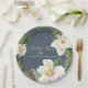"Folhagem Floral Rústica Marinho Dusty White Watercolor Magnolia Chá de panela Paper Plate." Adorável por primavera ou verão ou Chá de panela de outono. Sensação leve, arejada e elegante quando misturada com a cremosa magnólia branca floresce sobre galhos e verde-folhagem verde e castanho. Arte pintada por uma artista e designer internacionalmente licenciada, Audrey Jeanne Roberts, copyright.