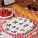 Ilustração desenhada à mão de folhas dançantes inspirada em um dia ventoso de outono no Maine. Cada folha individual é modelada a partir de uma pose de dança diferente.