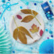 Estas placas de papel têm folhas de outono pintadas nelas.