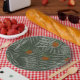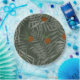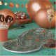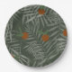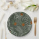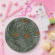 Um padrão humorístico, exótico, com folhas de palma desenhadas à mão e laranjas maduras sobre fundo escuro. Perfeito por adicionar aquela mola tropical je ne so quoi a roupas, decoração doméstica e acessórios.