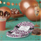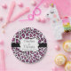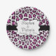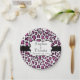 Placas de papel impresso do Leopardo com design de impressão de animais roxo, preto e branco, uma faixa branca com faixa preta que você pode personalizar com os nomes da noiva e do noivo e a data do casamento.