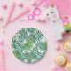 O design apresenta ilustrações atraentes de frondas palmeiras e folhas. Eles são pintados em aquarela por um artista qualificado. As folhas verdes parecem absolutamente lindas!