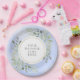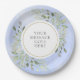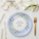 Com destaque para folhas verdes de aquarela botânica em um fundo de aquarela azul manchado. Este prato de papel elegante pode ser personalizado com sua própria mensagem. Perfeito para casamentos, festas de noivado, celebrações de aniversário, chás de noiva, chás de bebê, batismo e encontros de aniversário. Desenhado por Thisisnotme©
