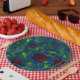 Prato De Papel Folheto virtual azulado com hexágono vermelho escu