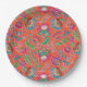 Prato De Papel Folk flor brilho laranja padrão floral casamento
