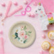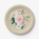 Prato De Papel Força Rústica & Rosa Bege com Floral em Aquarela F