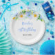 This beautiful and elegant plate features watercolor blue forget-me-nots, daisies and foliage. The text combines handwritten script and serif fonts for a stylish and modern look. This is perfect for a spring or summer rustic birthday.