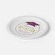 Pratos de papel personalizados elegantes para festa de formatura da TURMA DE 2026, apresentando um falso capuz de formatura em burgundy, marrom e dourado metálico com o ano e o seu texto personalizado (mostrado com PARABÉNS NOME) em marrom. ASSISTÊNCIA: Para obter ajuda com modificação de design ou personalização, alteração de cor, redimensionamento, transferência do design para outro produto ou se você gostaria de itens coordenados, entre em contato com o designer ANTES DE COMPRAR através da guia de MENSAGEM do Zazzle Chat ou envie um e-mail para makeitaboutyoustore@gmail.com.