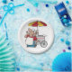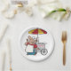 Um vendedor de cachorros-quentes com seu carrinho de cachorro-quente. Este design parece realmente eficaz nestas placas de papel