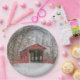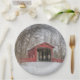 Prato De Papel Foto de neve vermelha da ponte coberta