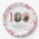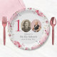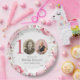 Prato De Papel Foto Floral Rosa Elegante 100ª Festa de aniversári
