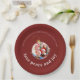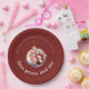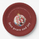Prato De Papel Fotos de Natal da Família Vermelho Borgonha Amor P