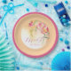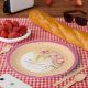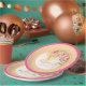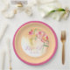O tronco de Freesia Rosa Quente é impermeável em uma lavagem solar tropical de textura. A tipografia graciosa personaliza-se elegantemente com as iniciais do casal e a data do casamento. Dois tons de borda circular.