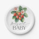 Elegant Watercolor Baby Shower Paper Plates with strawberry and calligraphy text " Berry Sweet Baby" for celebration your beautiful baby to arrive!