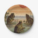 Prato De Papel Frogs Lily Pads Moon Illustration