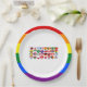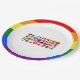 Decoração do Partido do Torneio do Catar, Tableware, Placa do Partido do Papel com 32 bandeiras de países de Marrocos, Croácia, Alemanha, Japão, Espanha, Costa Rica, Bélgica, Canadá, Suiças, Camarões, Uruguai, Coreia do Sul, Portugal, Gana, Brasil, Sérvia, Catar, Equador, Inglaterra, Irã, Senegal, Países Baixos, País de Gales, Argentina, Arábia Saudita, Dinamarca, Tunísia, México, Polônia, França, Austrália, Austrália, Austrália, cercado pela borda do sinalizador do orgulho LGBTQ.