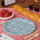 Soft watercolor stripes in wintry blues and grays stretch across a peaceful canvas, scattered with delicate white snowflakes. This tranquil design appears across a coordinated range of Christmas party supplies, perfect for gatherings that celebrate quiet beauty and seasonal charm.