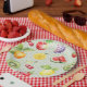 Placas de papel de festa de aniversário com padrão de fruta de dois frutos. Itens correspondentes estão disponíveis.