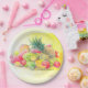 Retrato de frutas em cores vivas e vibrantes com luz solar forte. Expressão de vitalidade e felicidade.