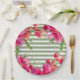 Prato De Papel Fuchsia Floral Green Stripes Festa de formatura