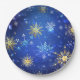 Prato De Papel Fundo Azul XMAS com Flocos de Neve Ouro